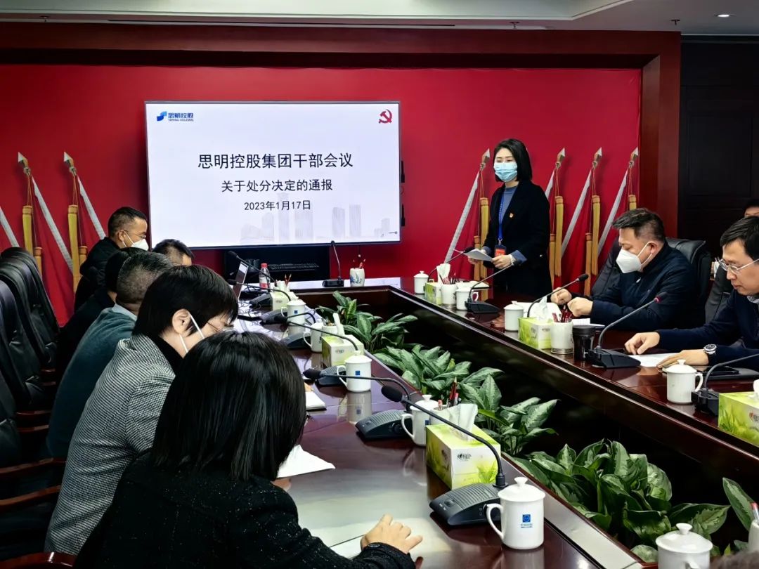 2023年1月以来,派驻纪检组在思明控股及所属公司召开三场警示教育大会,原原本本通报对国企相关人员开除党籍、公职处分的决定,进一步发挥典型案例震慑警示作用。