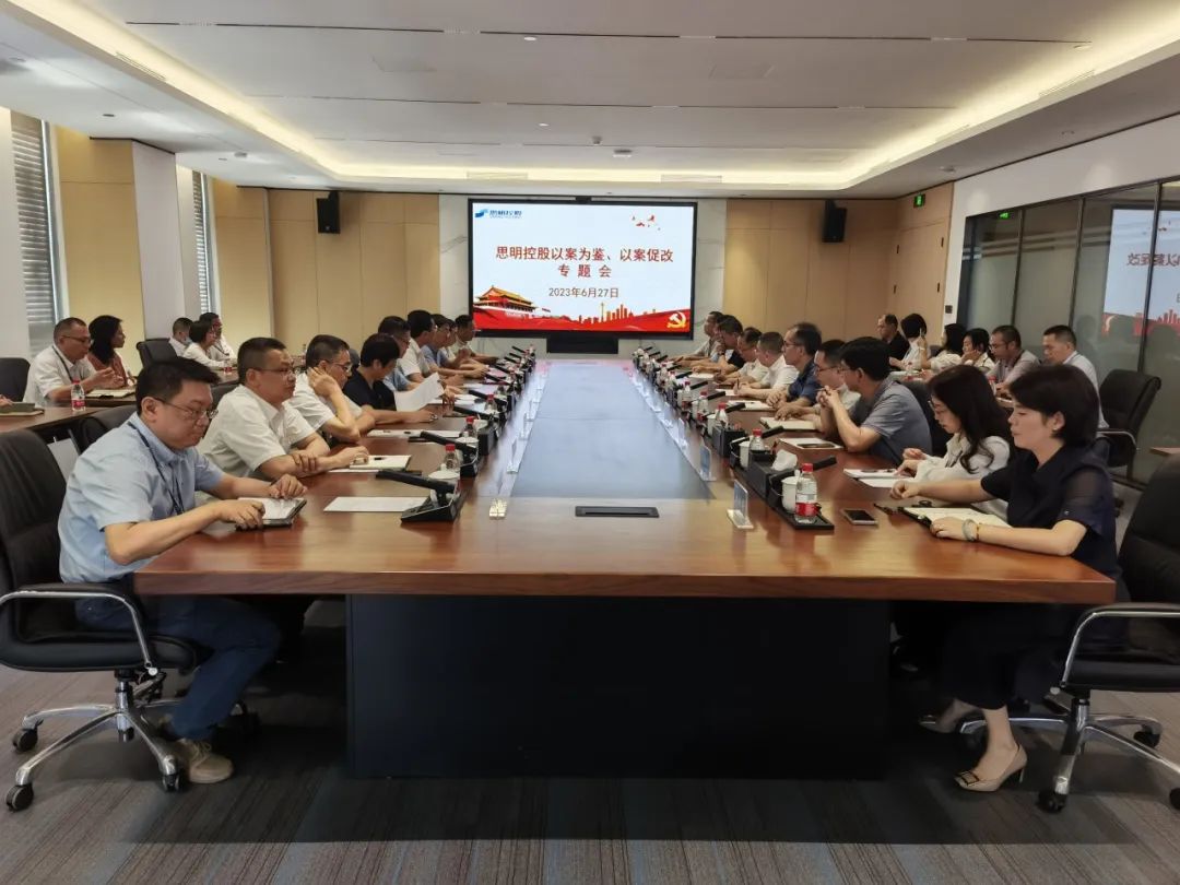 6月,在区纪委监委、财政国资直属党委指导下,思明控股集团召开以案为鉴、以案促改专题会,37名干部参加。会上区纪委监委宣读《关于许某某等人违纪违法案件案后整改的纪检监察建议》和国企相关人员《悔过书》,3名干部代表和集团领导表态发言,进一步提高认识体会,把思想和行动统一到“以案促改”上来。