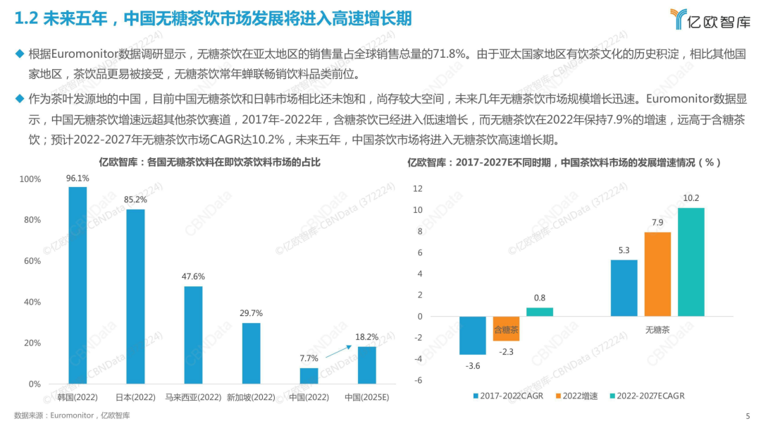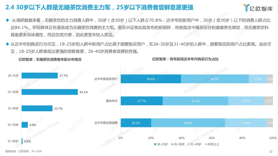 随着消费者健康意识增强,“减糖”成全球消费共识。中国无糖茶饮增速远超其他茶饮,线上销售规模五年突破10倍,市场规模年复合增速达28.6%。北上广深等一线及新一线城市深度消费者占比超40%。超50%消费者近半年购买更频繁。81.5%消费者选择线下购买渠道。无糖茶饮抢占有糖茶饮市场,成市场增量主力。