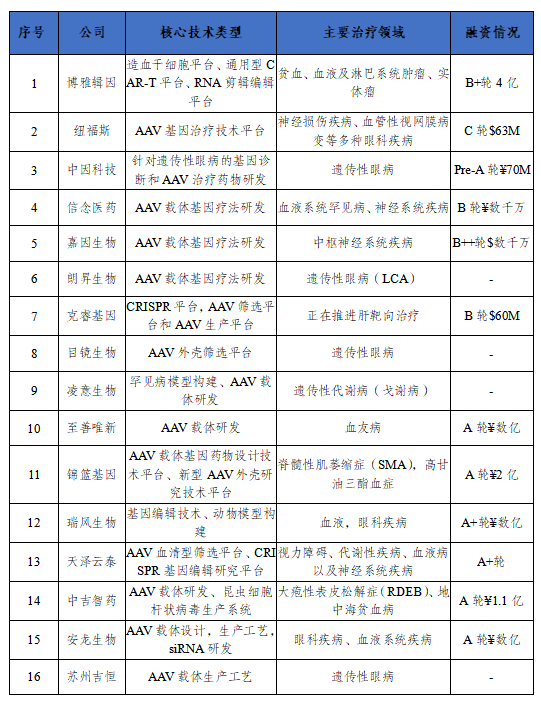 表4 国内知名基因治疗公司布局