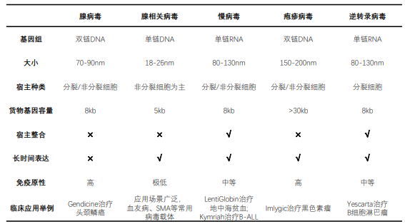 表1 不同病毒载体对比