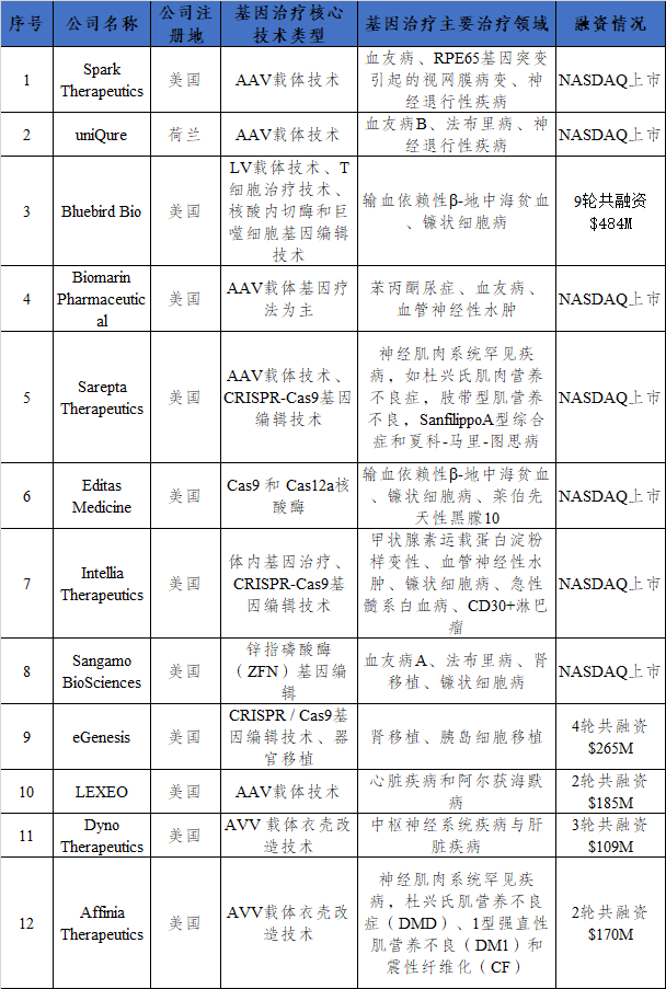 四、国内外基因治疗公司布局