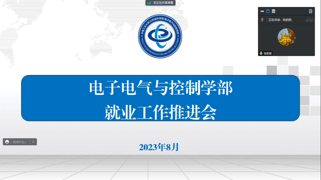 为做好2023届毕业生就业工作,8月4日,齐鲁工业大学(山东省科学院)电子电气与控制学部召开了2023届毕业生“就业攻坚”工作推进会。学部主任杨子江、党委书记王国栋、常务副主任严志国、党委副书记赵菁出席,各系系主任、毕业班辅导员参加会议。会议由党委副书记赵菁主持。