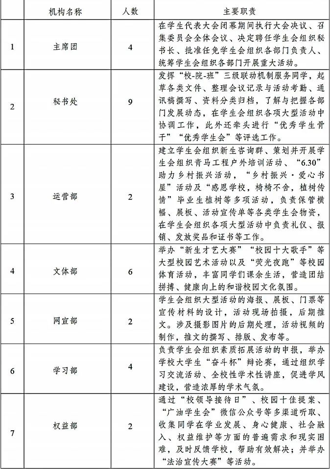 为落实共青团中央、教育部、全国学联联合下发的《关于推动高校学生会(研究生会)深化改革的若干意见》,并结合《关于巩固高校学生会(研究生会)改革成果的若干措施》文件要求,接受广大师生监督,现将我校2022-2023学年学生会改革情况公开如下。