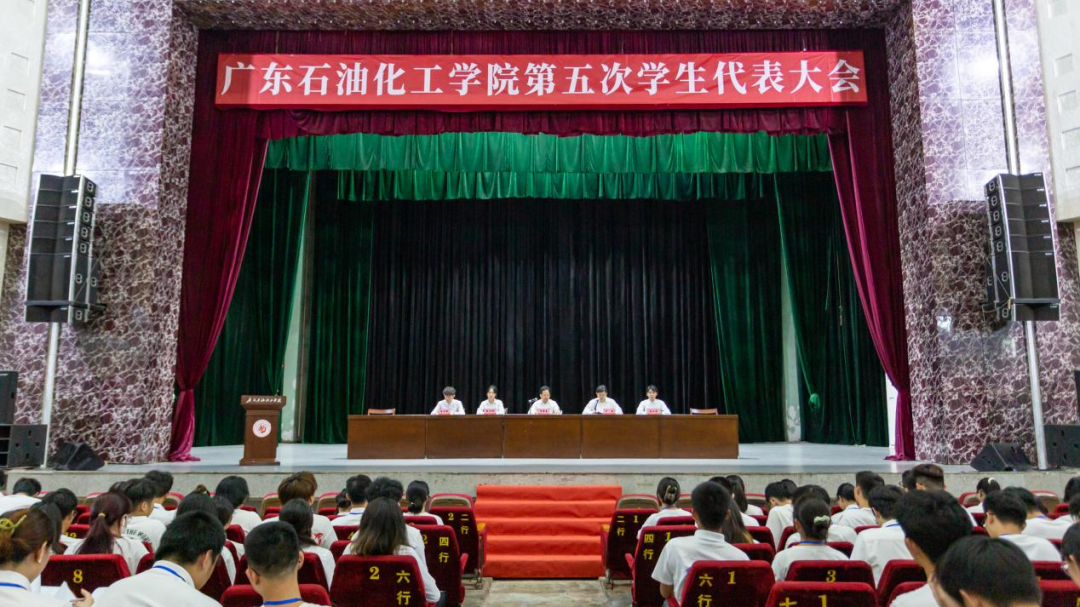 2023年6月25日,广东石油化工学院第五次学生代表大会在官渡校区科技会堂举行。学校党委学生工作部、校团委负责人,各二级学院团组织负责人、学生会指导老师、大会主席团成员及220多名学生代表参加了会议。