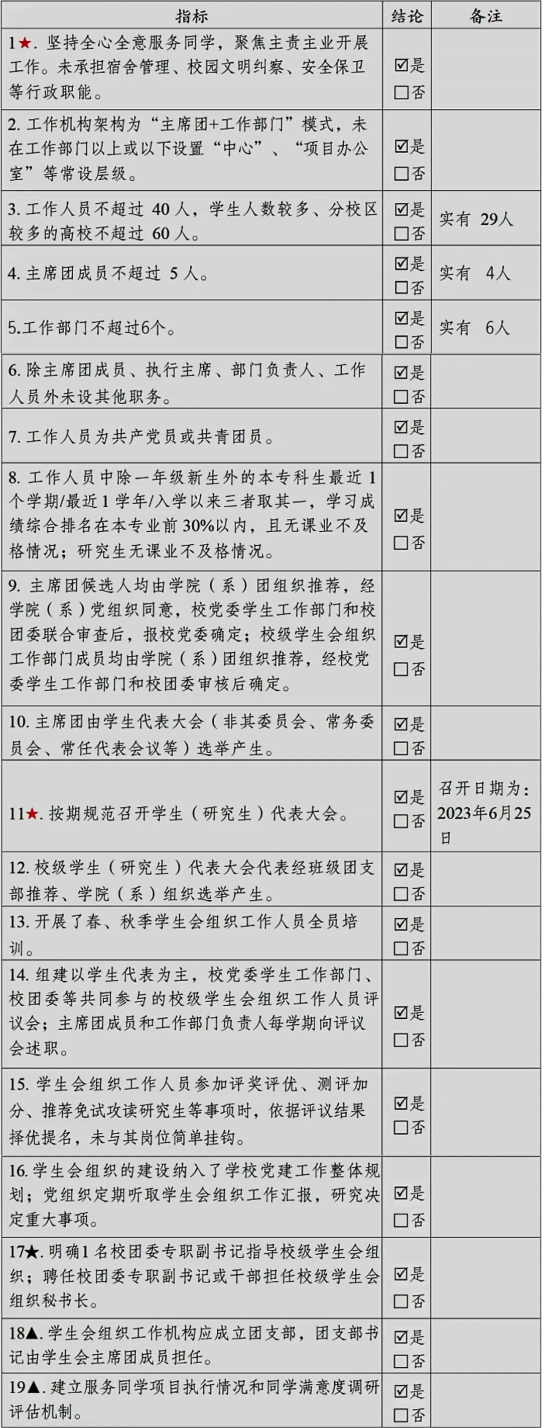 (二)二级学生会组织(含二级院系、书院、分校区等学生会、研究生会)改革自评表