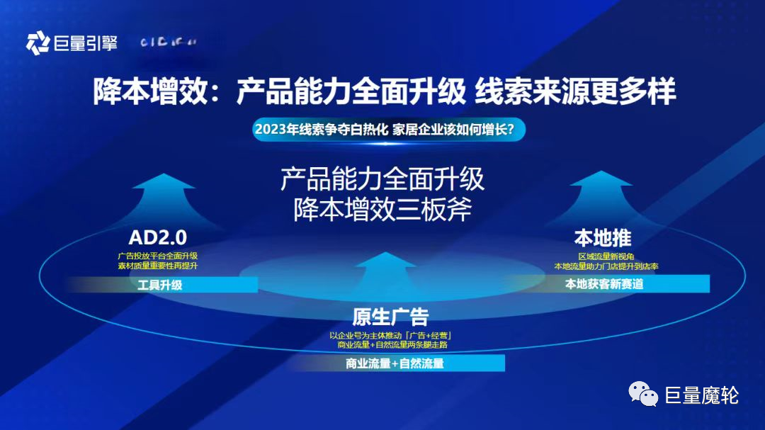 此外,巨量引擎还带来了全面升级的三款产品AD2.0、原生广告和本地推,进一步扩大线索来源。