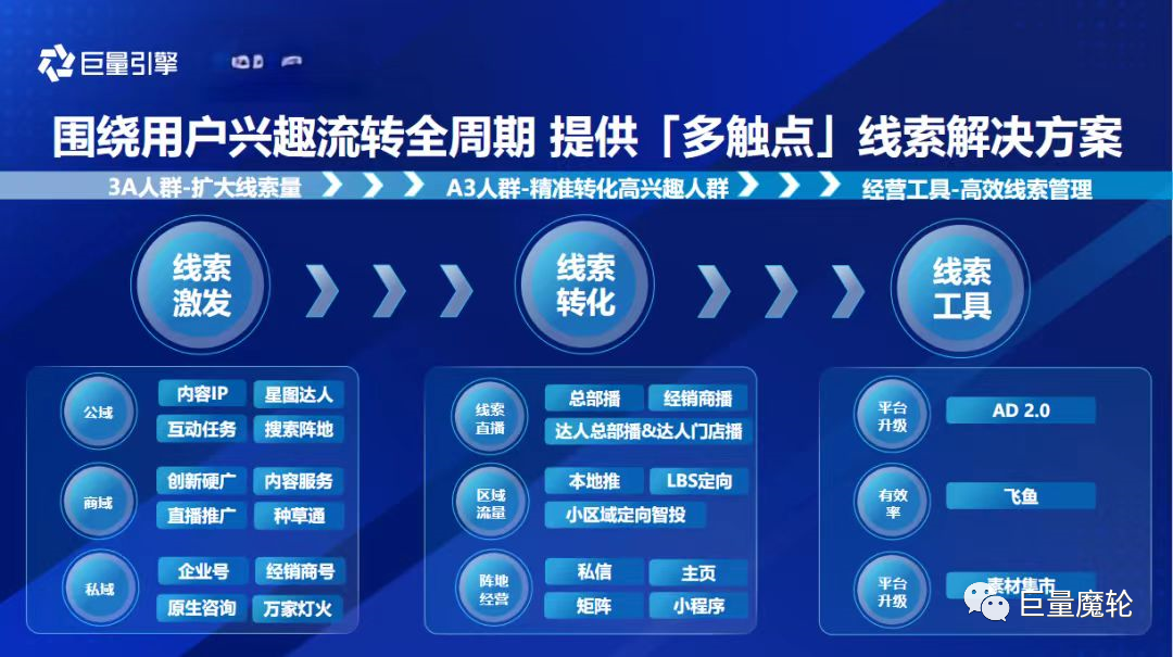 对此,巨量引擎基于家具行业经营实况,围绕用户兴趣流转全周期,给出了从线索激发、线索转化到线索工具的「多触点」线索解决方案: