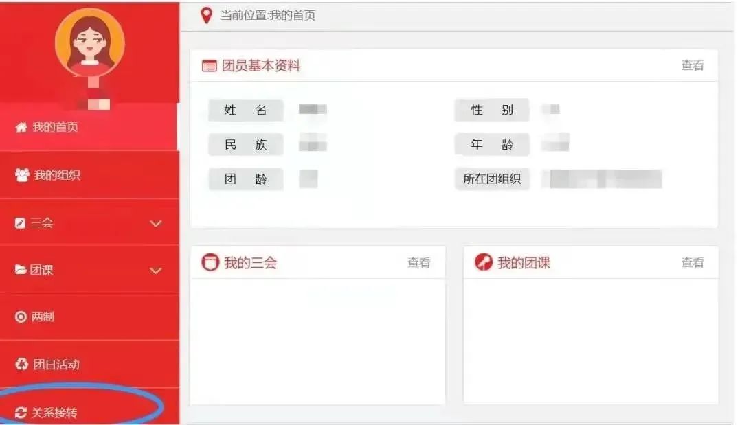 3. 进行个人团关系组织转入申请