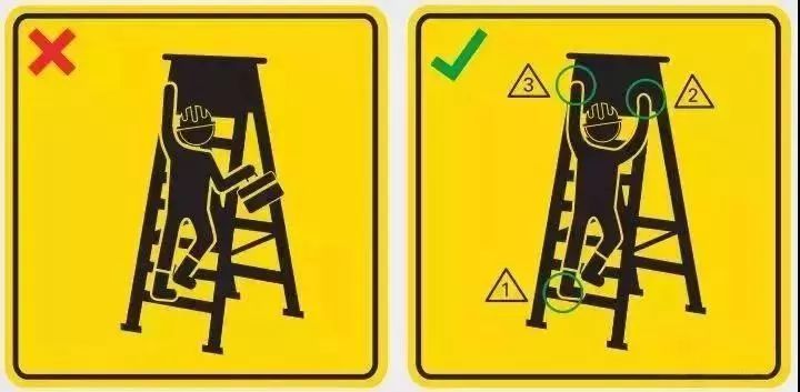 5.使用梯子时,必须维持三个接触点的攀爬法。