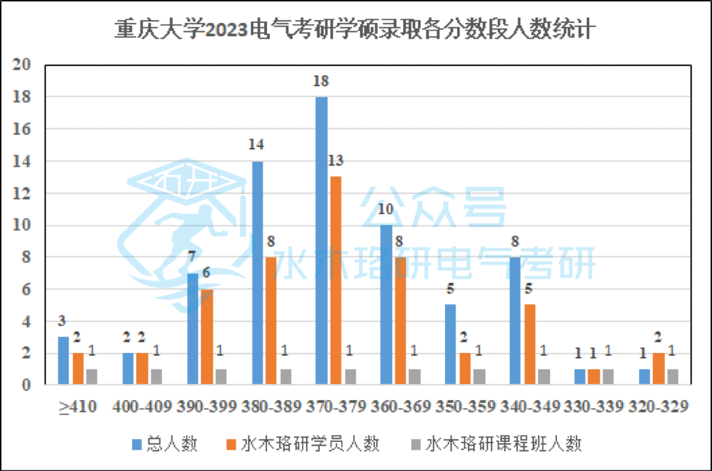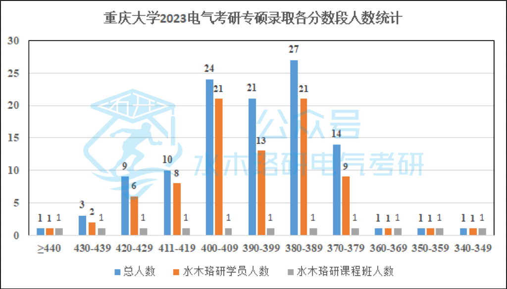 电气专硕,400分以上考生共49人,其中水木珞研学员33人,占比67%; 拟录取95名考生,其中水木珞研学员64人,占比67%(含专项计划);专硕前十名课程班学员占比70%。