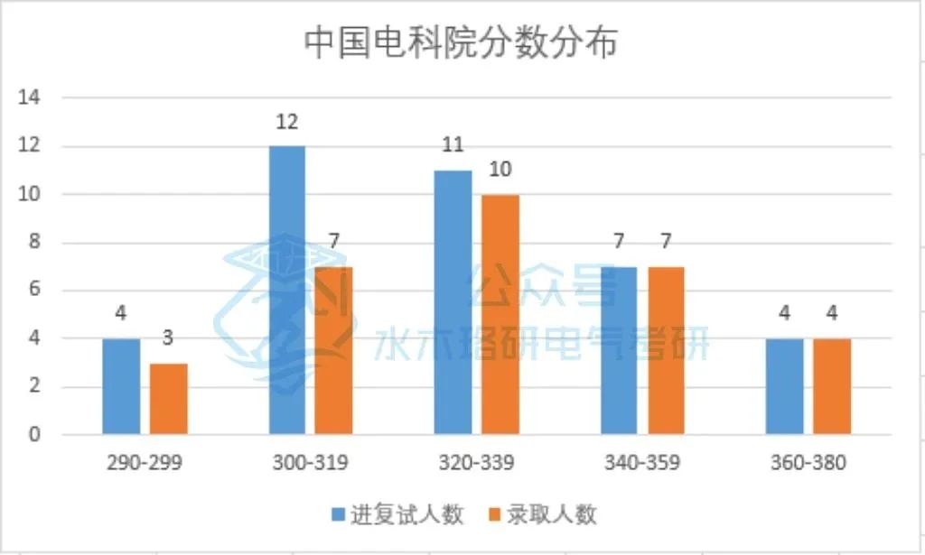 华电北京校区学硕招收154人,复试线为310分。初试1:1分数线为328分,录取最低分为315分,录取考生平均分为351.9分。分数低于328的考生中最后有16人被录取,复试的逆袭概率较低仅有10.4%。值得一提的是,初试357分的中高分选手复试却也惨遭淘汰,因此同学们对于复试的准备也切不可大意。录取考生的初试成绩分布情况如下: