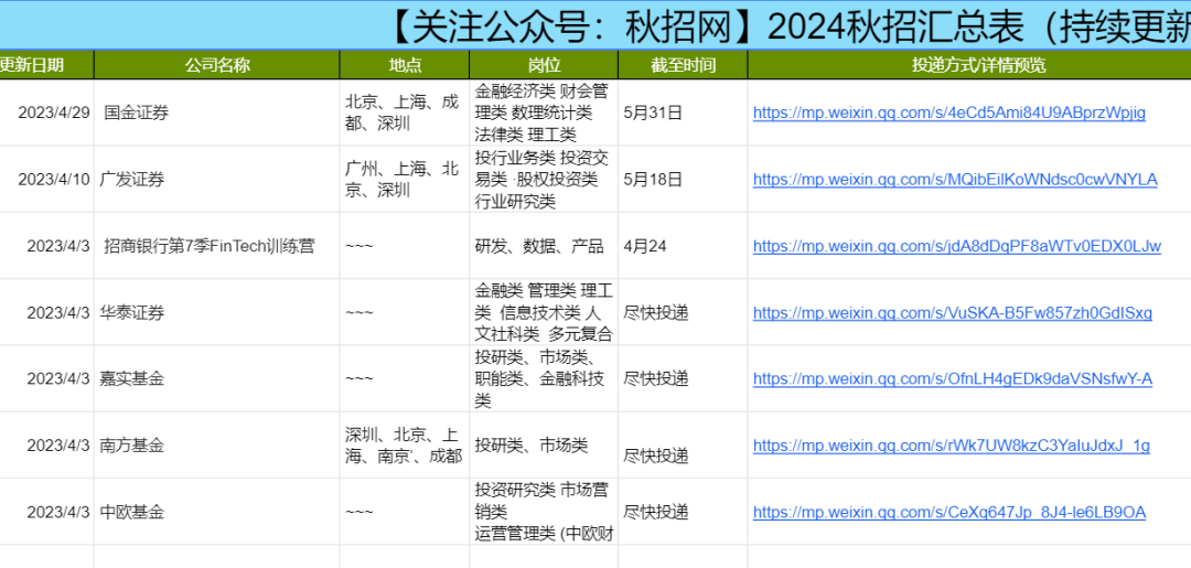 (2024届秋招表展示)