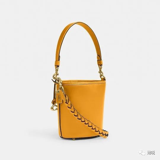 Dakota 16 水桶包采用极简敞口廓形搭配C字母吊坠,底部金属脚钉保护包底免受磨损,本次将辫编工艺运用在可拆卸长肩带中,斜挎时为整身装扮增加看点,推出萨摩亚太阳黄、琥珀棕和玫瑰紫3种配色。