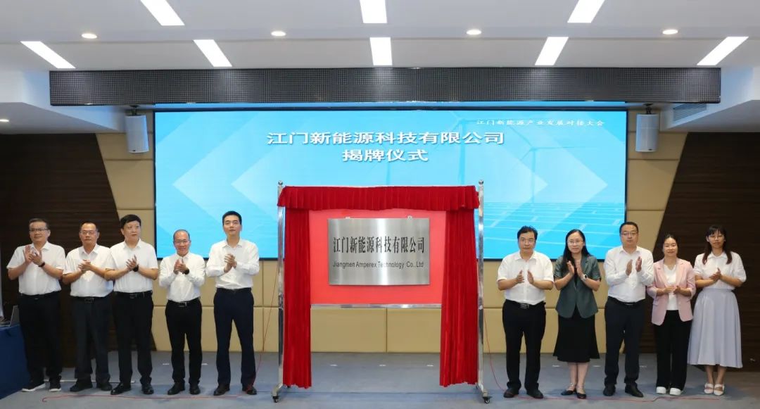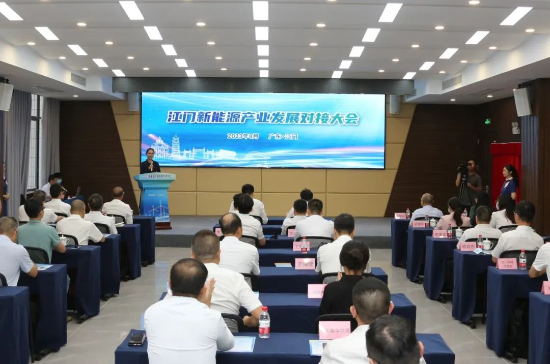 8月4日下午,江门市国资委联合江门公用集团共同举办江门新能源产业发展对接大会。本次大会以“逐梦新千亿 奔向新蓝海”为主题,旨在进一步拓展新能源赛道布局,推动我市硅能源、新能源电池、新型储能等特色产业实现高质量发展。隆基绿能、中创新航等新能源产业头部企业,相关科研机构、金融机构、政府单位等100余人共聚一堂、共话发展,为江门建设千亿级新能源产业集群“充电蓄能”。会议还揭牌成立了江门新能源科技有限公司(以下简称“江门新能源科技公司”)。江门市委常委、常务副市长郑晓毅出席会议并致辞,各县(市、区)政府,市有关部门领导出席会议。