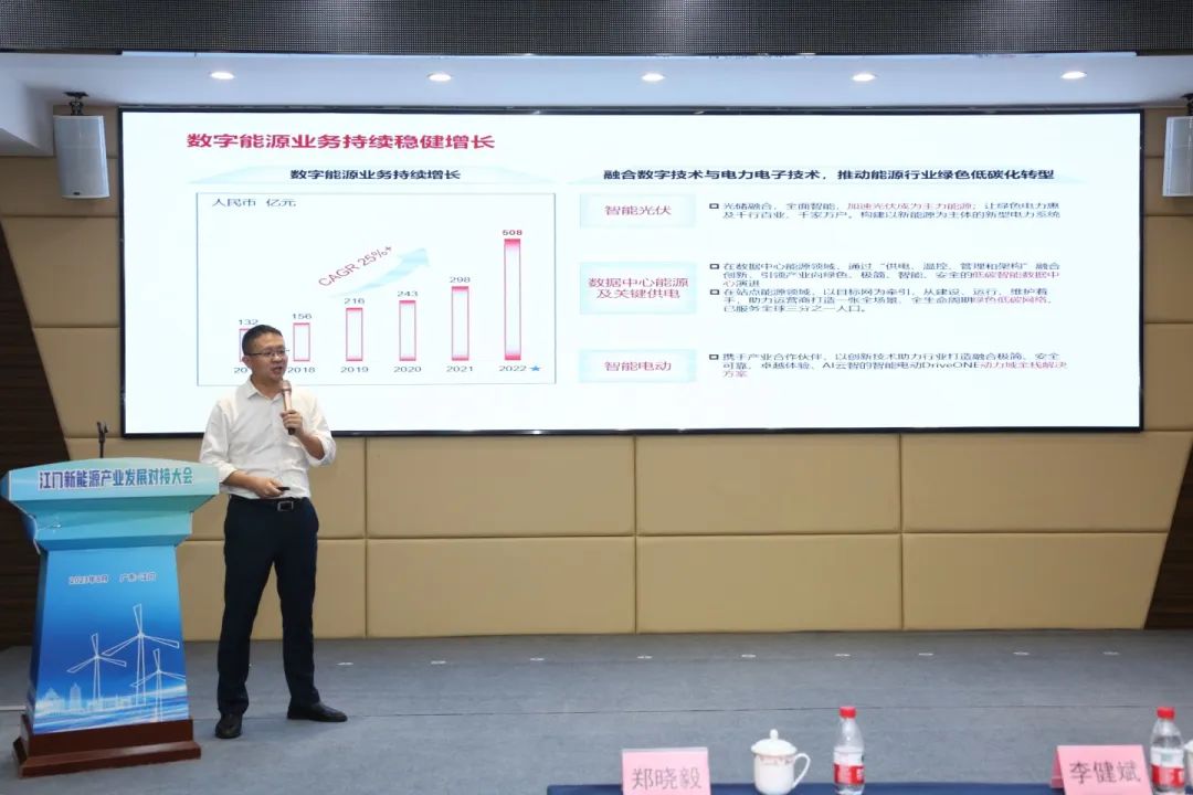 华为数字能源分析了“双碳”背景下推动光储充一体化的大势所趋,详细介绍了公司在工商业光伏、智能组串式储能、华为超充方面的业务优势,并以深圳龙华泰豪工业园为例,结合江门本土实际,介绍了在政府公建建筑、产业园区、高速服务区等布局光储充一体化解决方案等设想和规划。