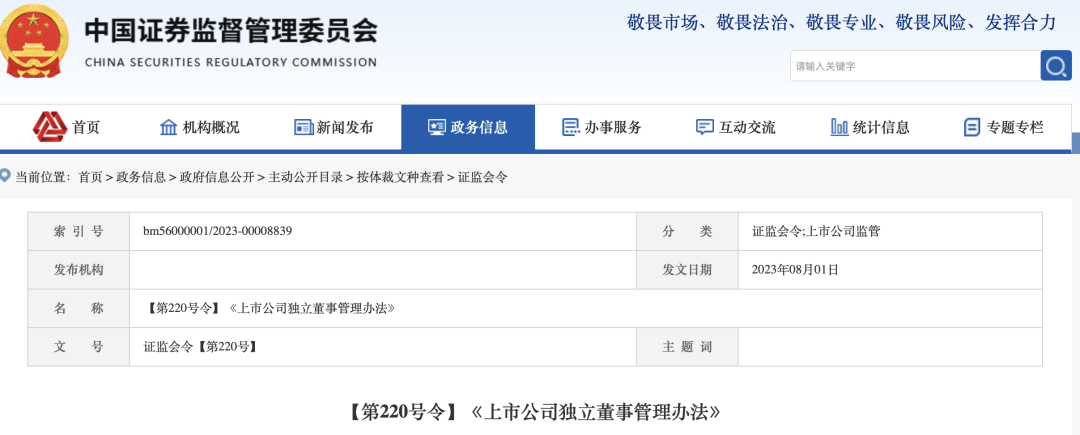【第220号令】《上市公司独立董事管理办法》