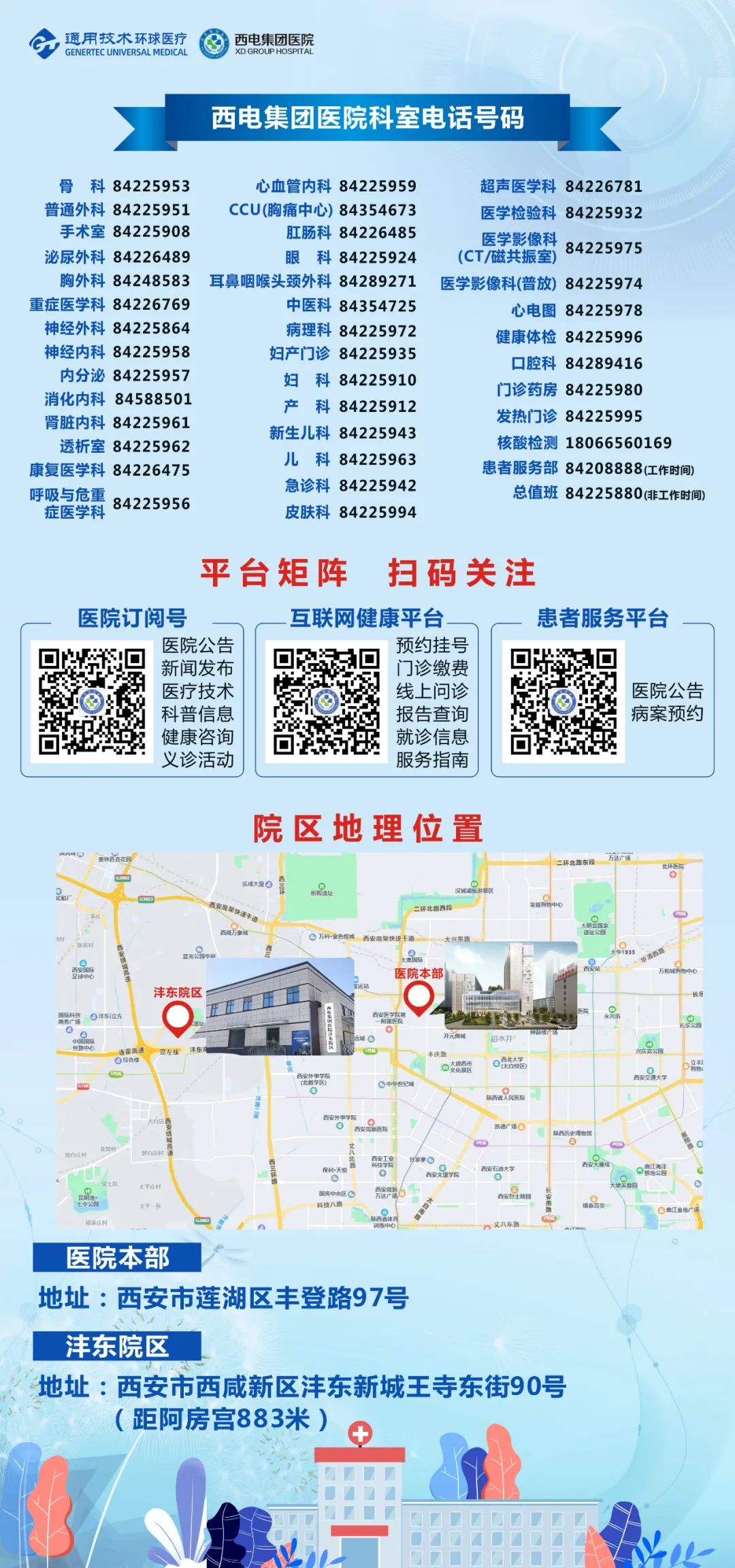沣东院区医务人员主要由西电集团医院本部派驻,具备与医院本部同等的三甲医院诊疗、检查和救治能力。沣东院区在医院本部信息化平台的强大支持下,可实现在线预约及线上缴费等功能,为患者提供足不出户的在线服务。