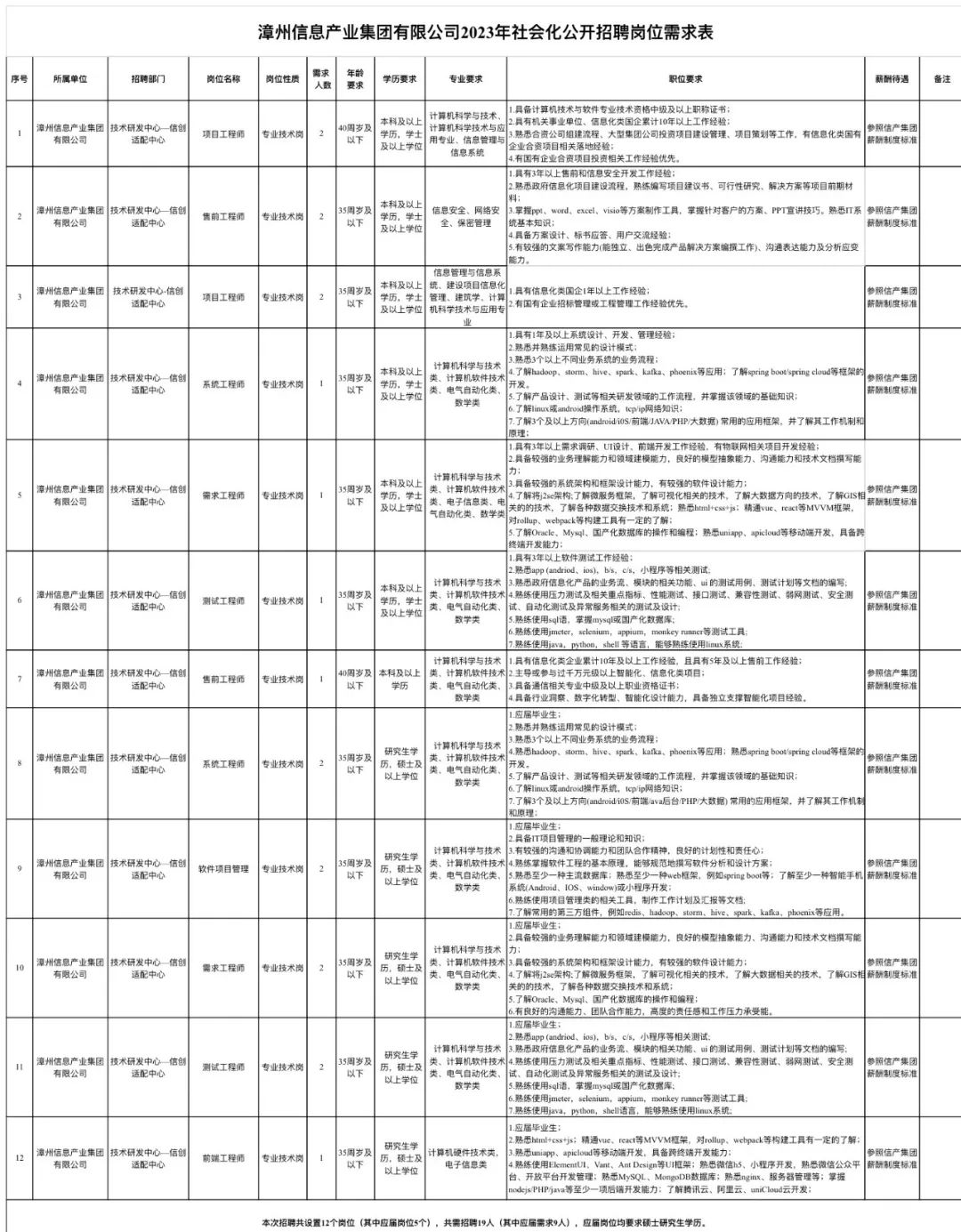信息产业集团!招19人!8月12日笔试!