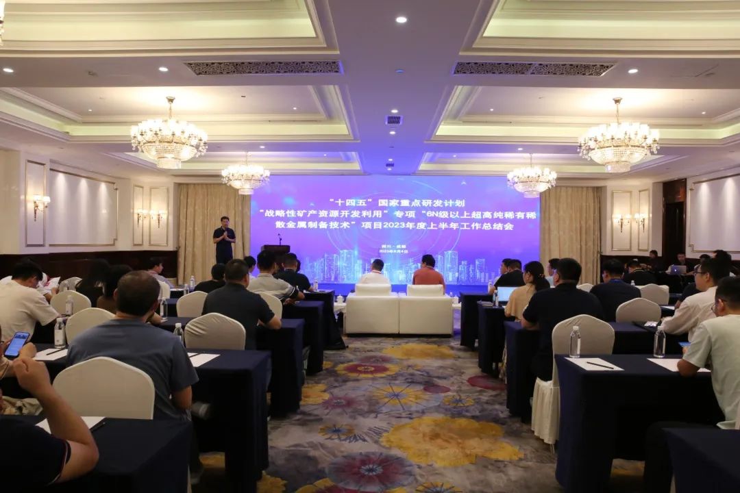 8月4日上午,“十四五”国家重点研发计划“战略性矿产资源开发利用”专项“6N级以上超高纯稀有稀散金属制备技术”项目2023年度中期交流会在四川成都召开。本次会议由成都中建材光电材料有限公司主办,项目依托单位郑州大学学术副校长赵中伟教授、成都中建材总经理潘锦功出席本次会议。