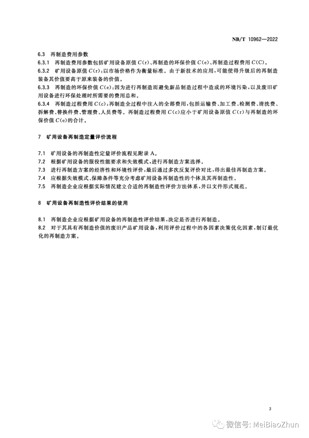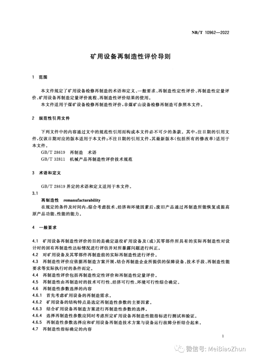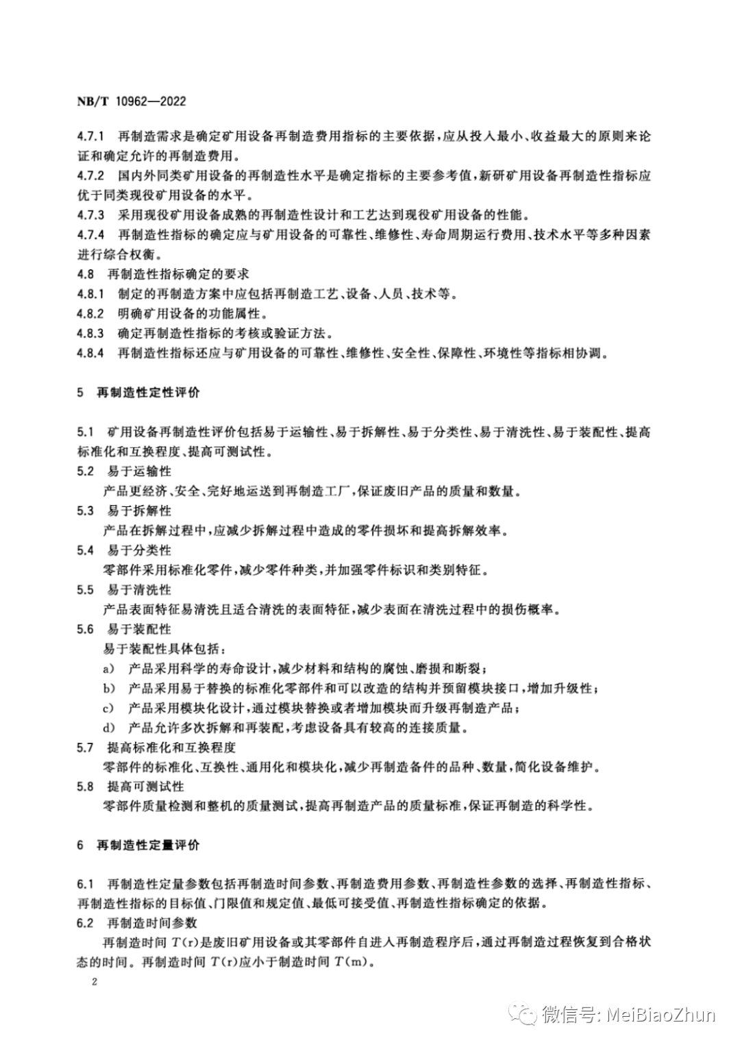 NB∕T 10962-2022 矿用设备再制造 再制造性评价导则