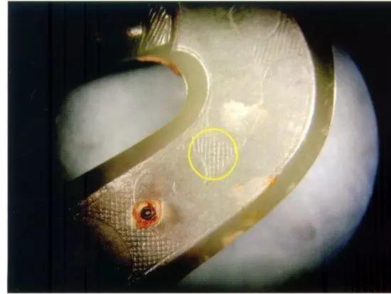 在放大镜下都是由若干条短线衔接而成的,这种由“短线”接成“长线”的工艺可简单称为“接刀工艺”。接刀工艺往往在弧线的“拐点处”,以及“成圆处”最为明显。