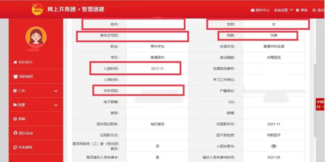 * 如果团组织关系转接内容与团员需求相符,请团员核实确定本人资料及转入团支部后,点击“确认”。