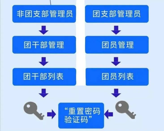 需要让本级或者直属上级组织管理员提供“重置密码验证码”(非团支部管理员查看团干部管理——团干部列表——钥匙小图标;团支部管理员查看团员管理——团员列表——钥匙小图标),拿到“重置密码验证”码后打开系统首页选择“忘记密码”,按照页面提示操作即可。