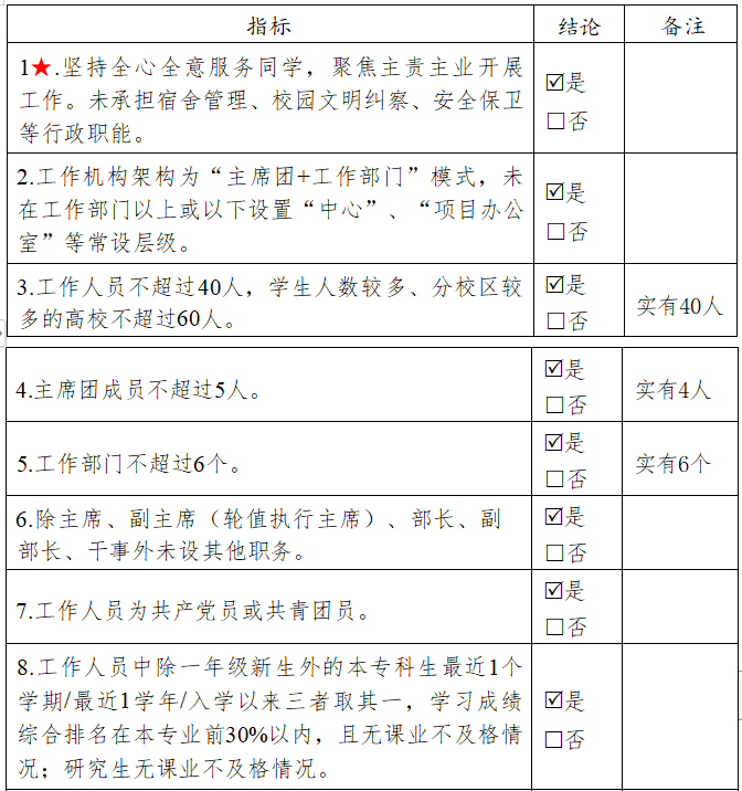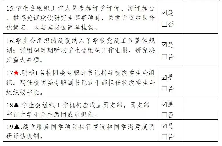 二级学生会组织(含二级院系、书院、分校区等学生会、研究生会)改革自评表。