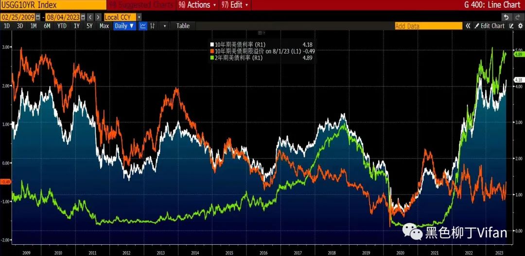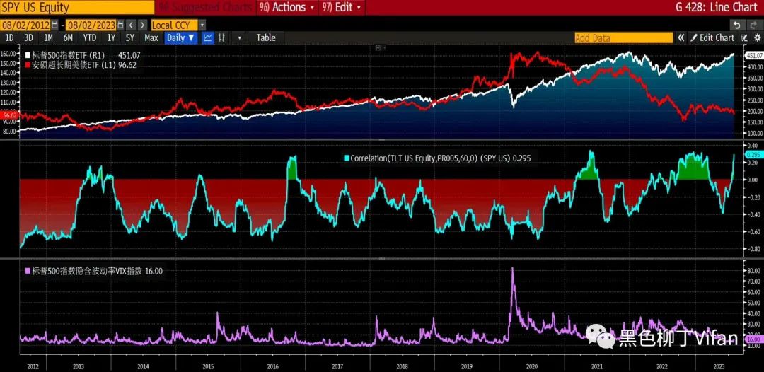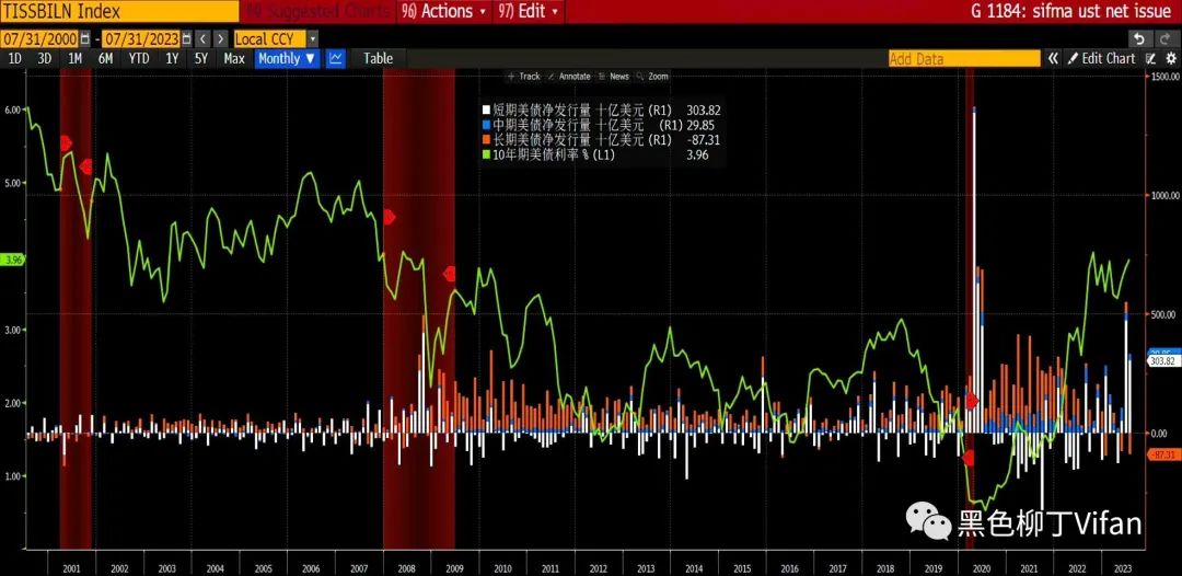漂亮国今年发债净发行量增加以短债为主,长债利率的最大的推动力是美联储加息拉升实际薪资增速,产出缺口持续缩小,这引发了长债的期限溢价持续反弹,10年期TIPS拉升,SPY和TLT的60天相关性大幅走高,美股美债大宗齐跌,美元指数大涨,这种场景大概率是定价通胀反弹风险导致,而最新联储主席认为非农比薪资增速更具指引作用,预计无需进一步加息,期限溢价走高推升美债利率,2年期美债利率回落又给拉下来