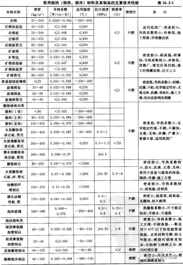 2.3,计算附属资料(常用绝热材料的主要技术性能):