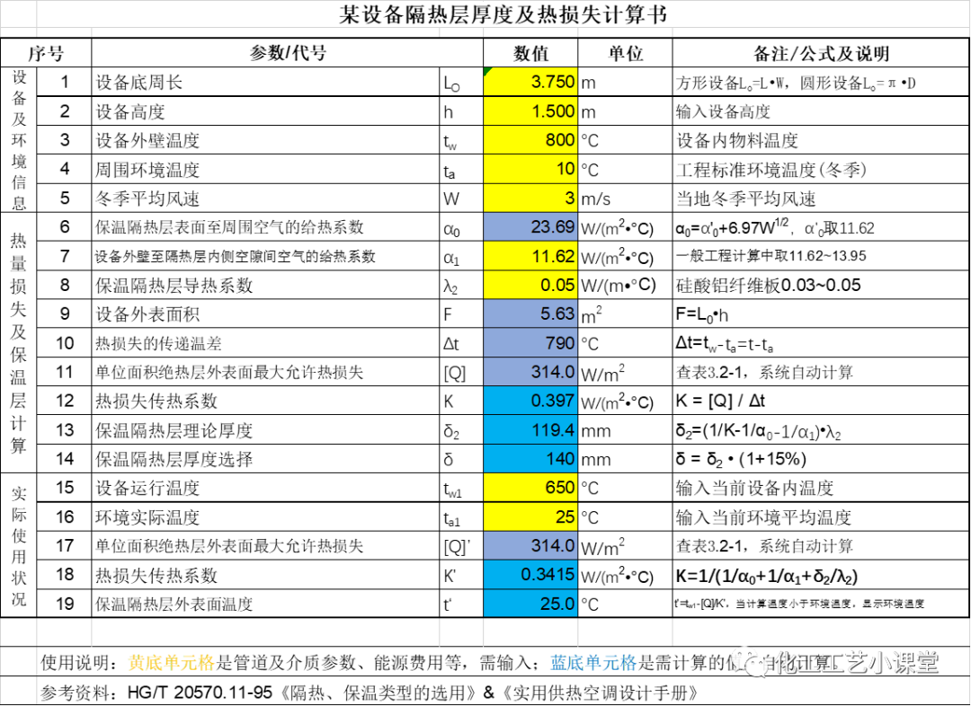 本计算书是小编参考相关资料编辑的,计算数据也在工厂验证过的,对应计算设备绝热层厚度非常实用。如果你想要该计算表格,可联系管理员,发5~5.8红包即可获取。