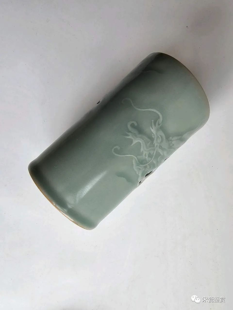 我们平常所见龙泉窑刻划花,印花这样的纹饰很少。所见不是贴塑,就是雕刻。