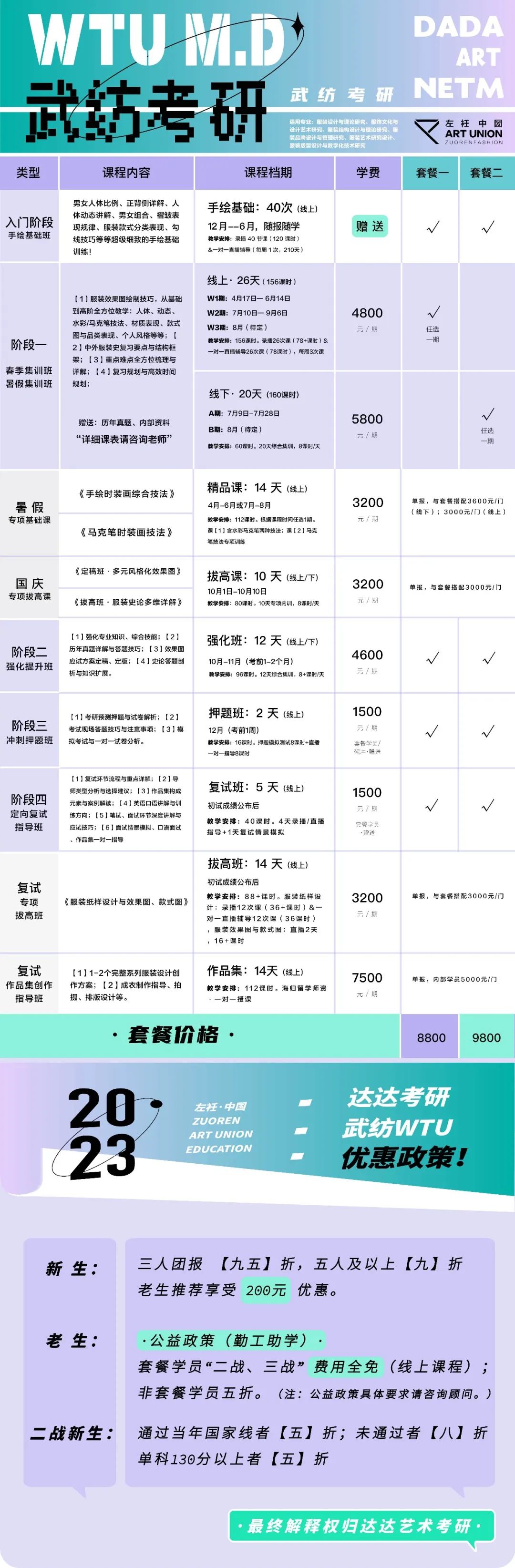 以及,我们根据学生专业基础能力的不同,逐渐细化出: A/ 针对本专业基础扎实的同学需要的“短·平·快”课程套餐; B/ 针对跨专业与本专业基础较弱的同学需要的周期较长、教学节奏较慢,有较长时间消化、理解知识的课程套餐; C/ 针对美术功底零基础的超级VIP课程套餐; D/ 针对单项课程较弱需要短期快速提升的国庆单项课程; E/ 针对不便线下学习而研发的线上课程套餐。从这些超级细腻的课程规划与课程套餐里,你一定会找到适合自己的那一款。