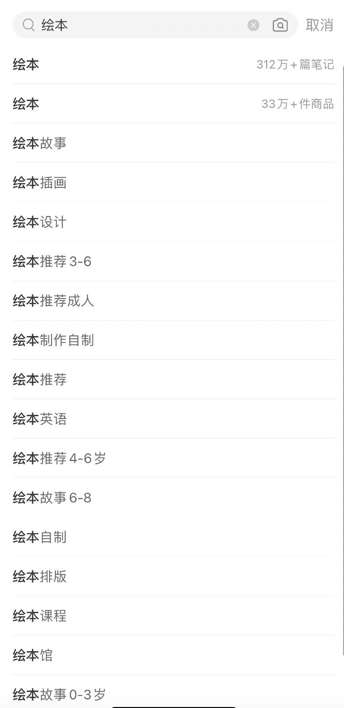 小红书“绘本”下拉词框