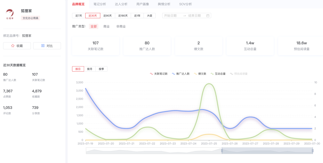 达人:拉取品牌在灰豚,主要以初级达人和素人分享,当前无报备笔记。更多通过达人分佣来带货,因其站内销量高,也不排除,前期做了大量的报备达人和广告;