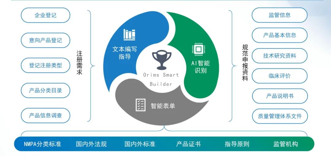 通过ORIMS Smart Builder智能表单模块,依托奥咨达丰富的注册经验数据,智能识别企业输入的注册需求,输出整套规范申报资料,同时给出文本编写指导,极大降低资料编写的时间和投入的人员、时间等成本。