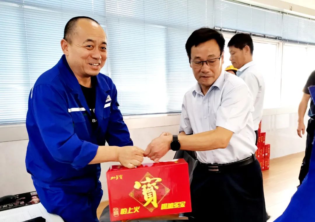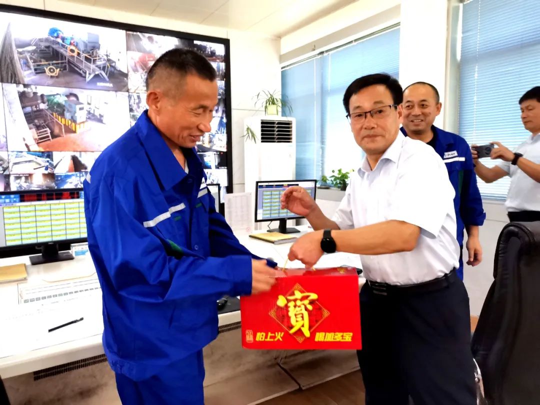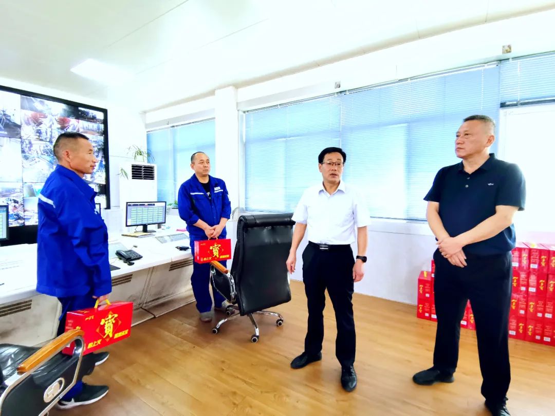 在华兴化工公司中控室,江峰向在高温下坚守岗位的一线干部员工致以亲切问候,并认真询问他们的工作和生活情况,对他们不畏酷暑、坚守岗位的辛勤付出,表示诚挚感谢和赞赏,希望华兴化工公司在组织有序生产的同时,把人的健康、安全放在首位,把防暑降温工作做实做细,全力做到“避高温,防酷暑,保安全,稳生产”, 确保广大职工身心健康。