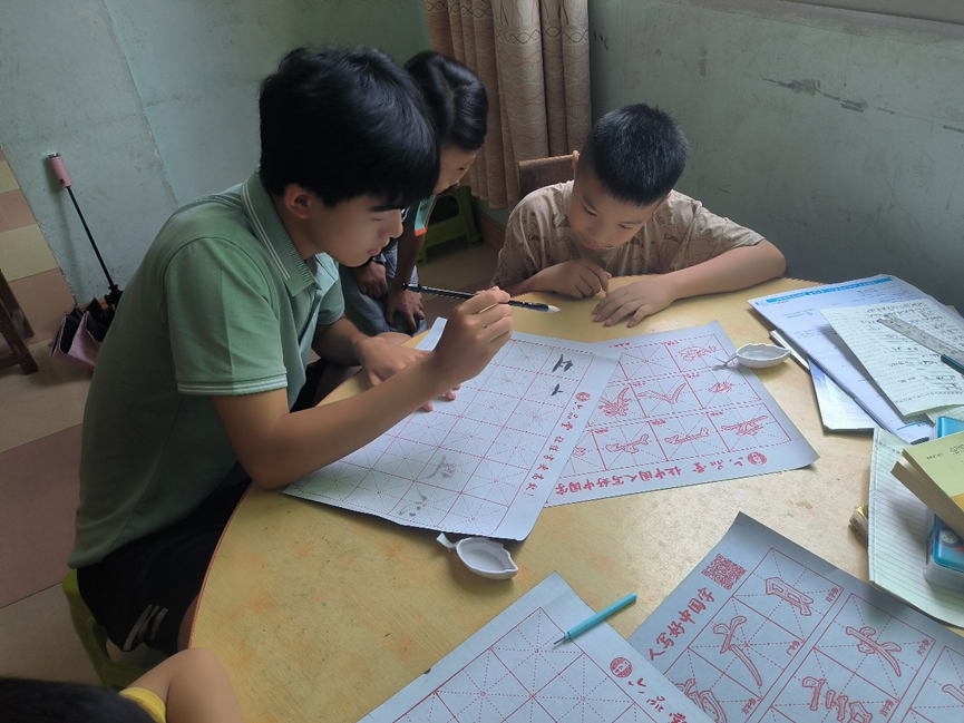 在中亭村的十天时间里,支教团队成员们深入到当地的家庭和学校,开展了丰富多样的文化教育活动,“晨读经典”活动受到了孩子们的热烈欢迎。每天早晨支教团成员带领孩子们诵读并学习经典诗词,于朗朗读书声中体味诗词的含蓄隽永。与此同时,支教团在走访考察中发现中亭村是一个革命老区,因此诞生了很多歌颂当地红色文化和基因的诗句,支教团成员决定契合当地文化,通过考察和筛选,把《题红旅中亭》《忆英雄》等具有代表性的红色诗词纳入晨读中,让孩子们学习当地红色文化,助力传承红色传统。