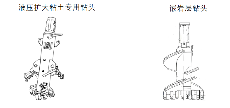 钻头采用先进的油压扩底技术,扩底直径为钻孔直径的1~1.6倍,扩底高度为钻孔直径的3倍;根据不同的地质情况,施工可选通用型钻头或专用钻头;