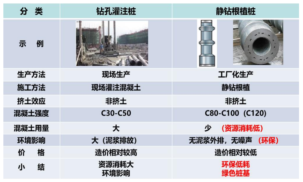 ①无挤土、无振动、低噪声;解决传统泥浆护壁灌注桩孔壁坍塌,沉渣控制、泥浆排放施工难题;