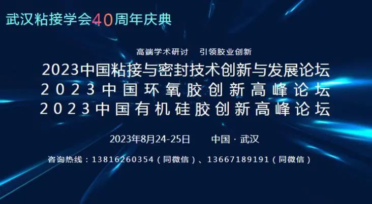 隆重推荐您关注2023年8月24-25日在武汉举办的“2023中国粘接与密封技术创新与发展论坛”暨“2023中国环氧胶粘剂创新高峰论坛”和“2023中国有机硅胶粘剂创新高峰论坛”(点击图片了解更多详情):