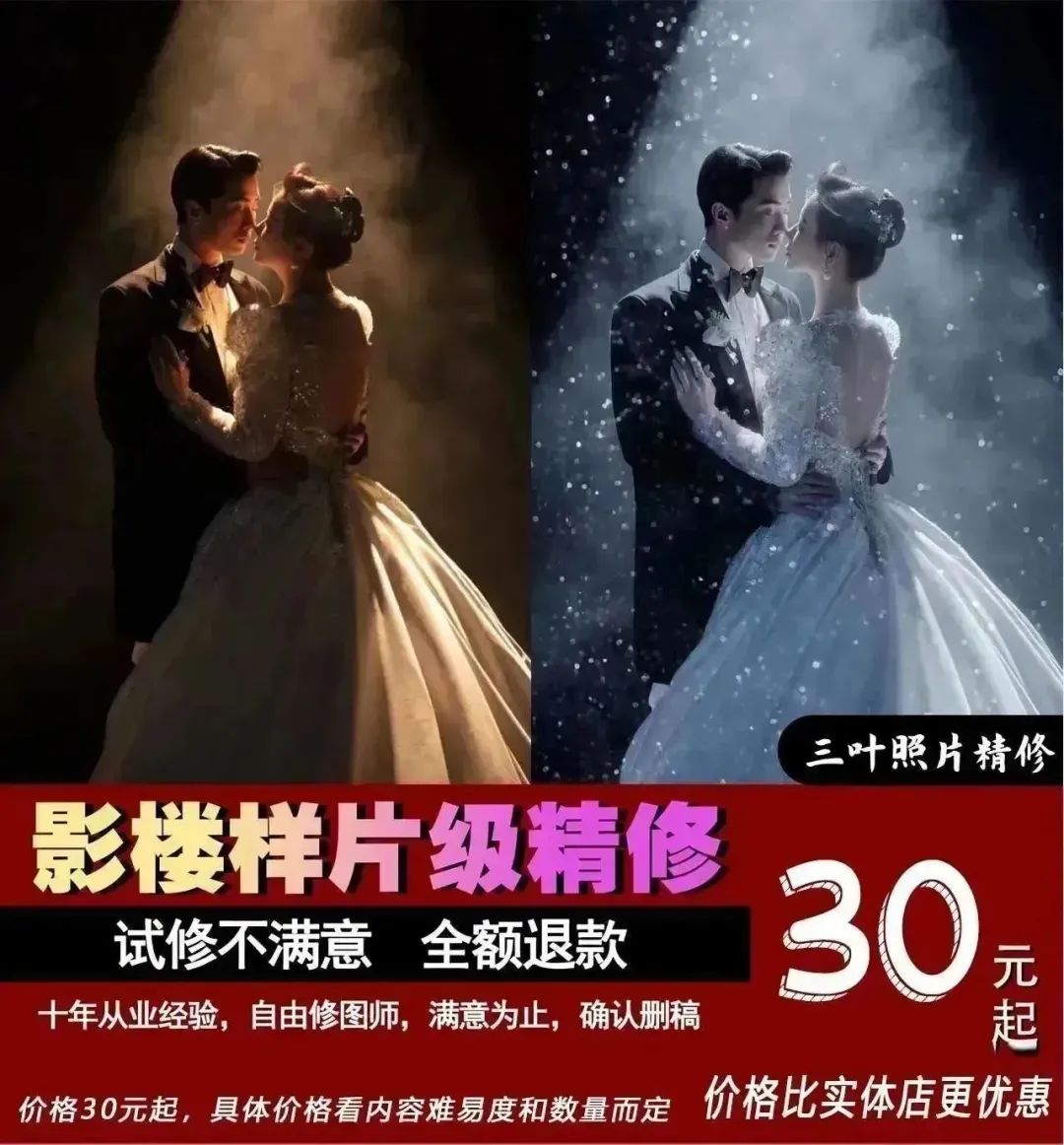 三叶照片精修:结婚照P图证件照片PS精修图合成登记照换衣服换底色扣图
