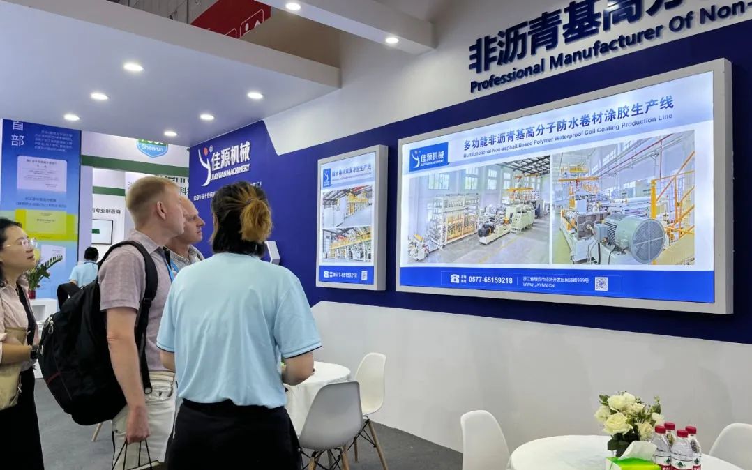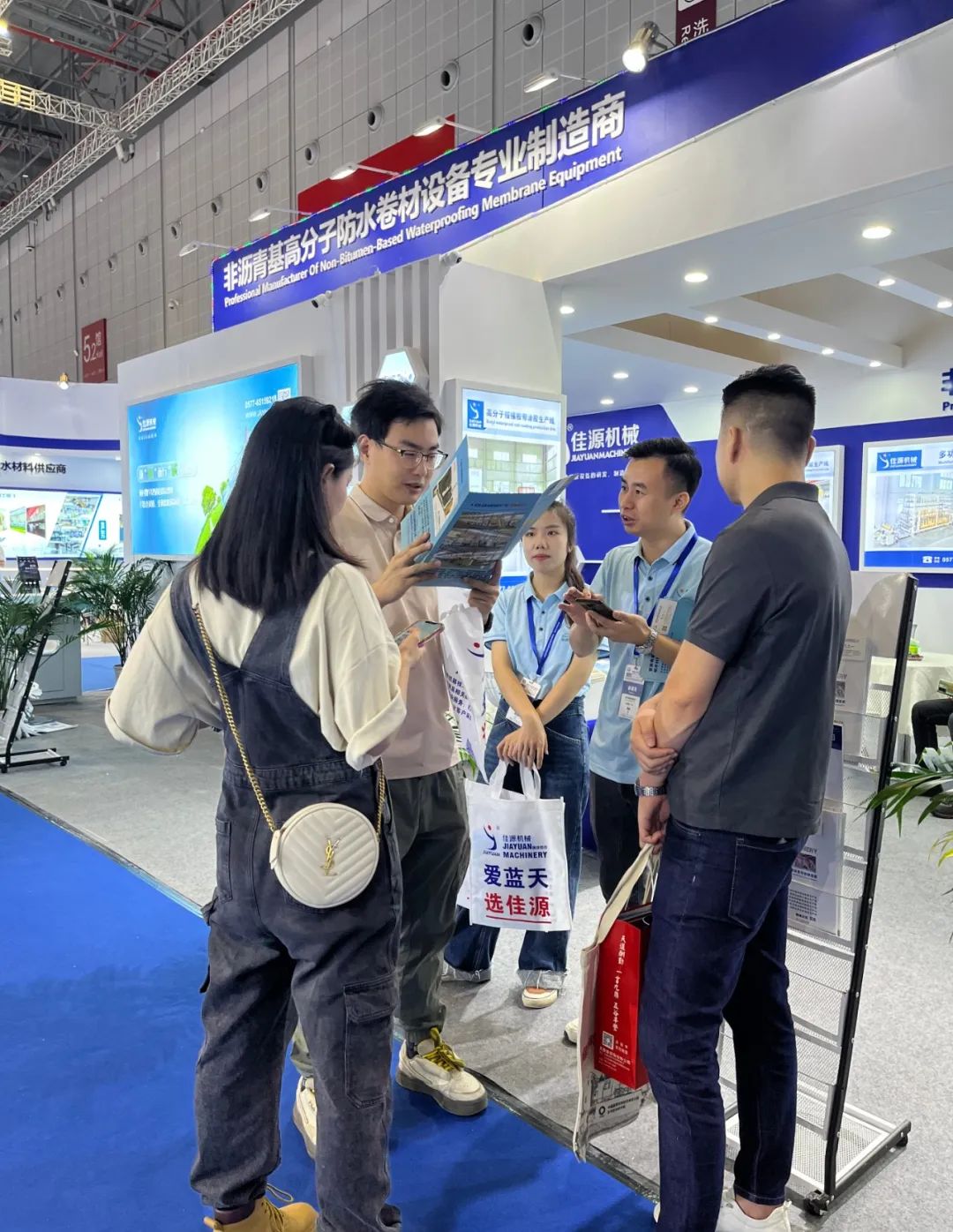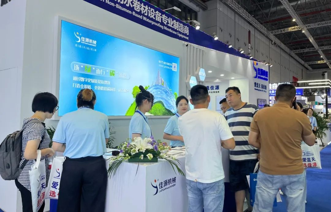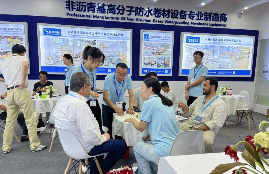 作为绿色防水卷材生产设备的先行者之一,佳源机械以逐"绿"而行,"碳"新路为主题,通过数字化赋能提质增效,打造全渠道、全链路低碳减排一站式服务,展示了创新与设计的激情碰撞,智能与个性的完美交融,吸引了众多国内外的新老朋友参观咨询。