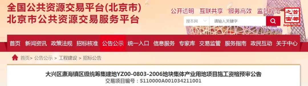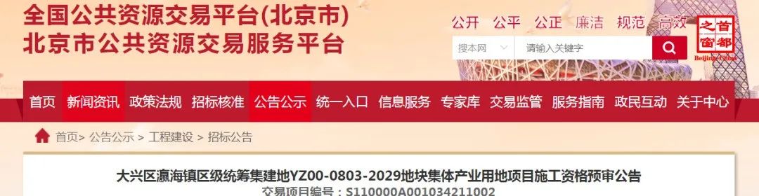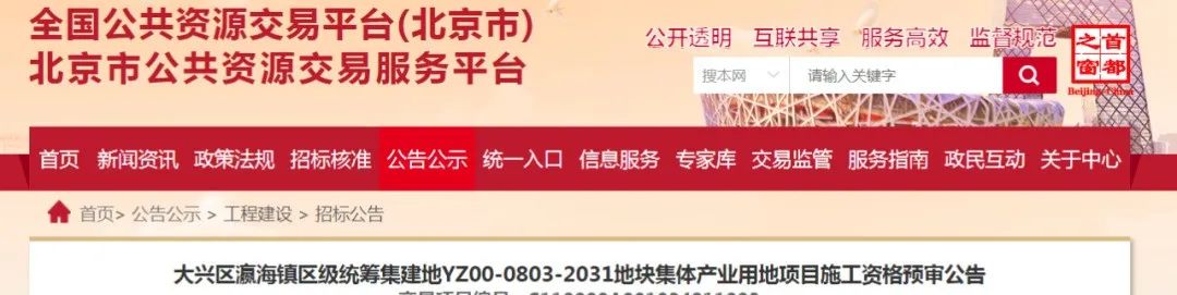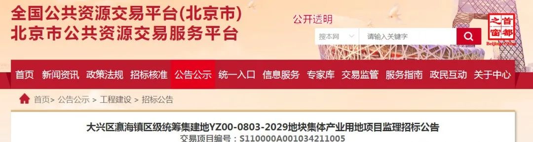 近日,小兴在市公共资源交易服务平台看到大兴区瀛海镇区级统筹集建地YZ00-0803-2029地块集体产业用地项目、大兴区瀛海镇区级统筹集建地YZ00-0803-2006地块集体产业用地项目、大兴区瀛海镇区级统筹集建地YZ00-0803-2031地块集体产业用地项目的施工及监理招标公告!