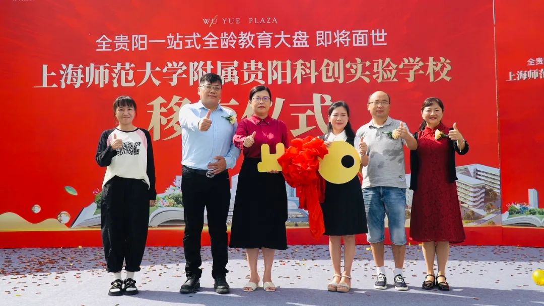 花溪区政府教育督导室副科级督学冯霞、上海师范大学基础教育处副处长李晓芳、小孟街道办事处项目部负责人黎涛、上海师范大学附属贵阳科创实验学校校长袁林、花溪区第一实验幼儿园党支部书记、园长朱宁、贵阳经开吾悦广场项目总监吴军、贵阳经开吾悦广场项目营销总监李坤出席移交仪式。