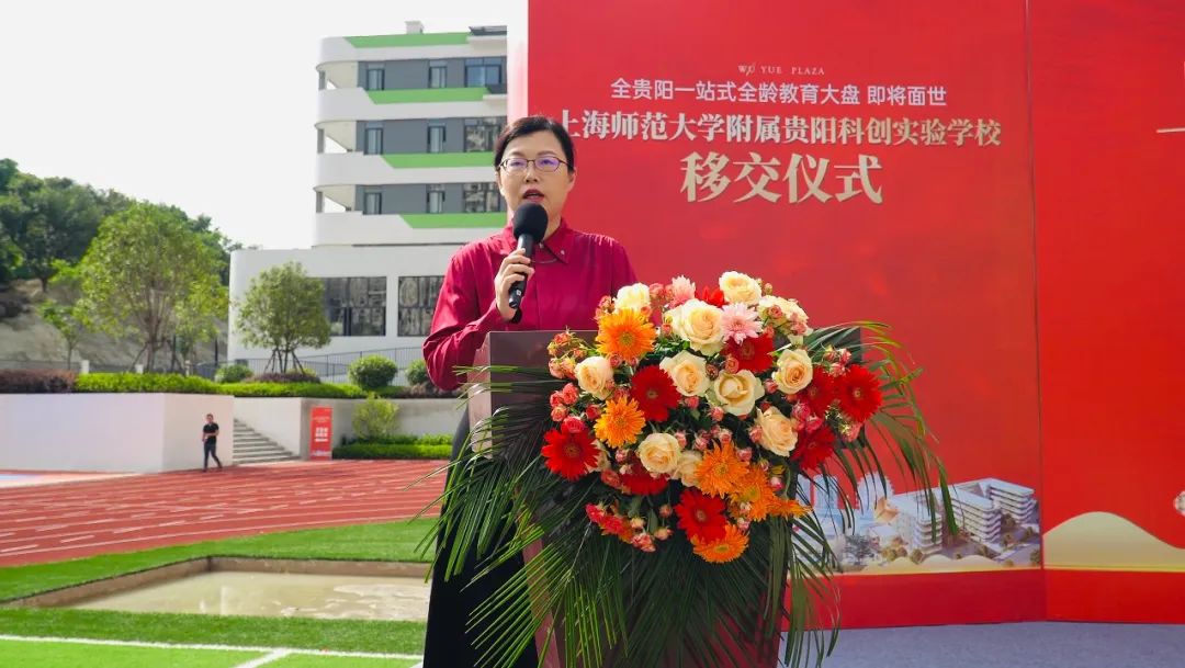 李晓芳处长在活动现场发表讲话,表示上海师范大学附属贵阳科创实验学校是我校第一所也是目前唯一一所以“科创”命名的实验学校,上师大力争将附属贵阳科创学校打造成为未来创新拔尖人才培养的摇篮,使之快速成为贵阳率先实现教育现代化的最佳样本、西南地区基础教育的高地,并通过附属贵阳科创学校向西南地区辐射更多的优质教育资源,用高质量基础教育服务体系为经开区和花溪区的发展汇聚人气、集聚人才、凝聚人心,让经开区和花溪区成为天下英才向往之地。