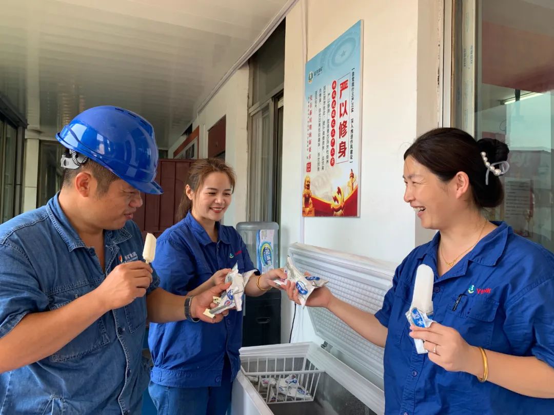 在厂会议室设立“爱心驿站”,配备防暑降温医药箱、小型饮水机,血压测量机、温度计等。近日,通过开展“每人一元钱 清凉伴一夏”活动,职工每人捐赠一元钱,班组长每人捐赠30元,厂领导每人捐赠100元,集体购买了一台爱心冰柜,并装满了雪糕和冷饮,职工在炎炎夏日里,可以随时吃到雪糕和冷饮,解暑降温。工作之余可在“爱心驿站”稍作休息,补充一下能量,来一块冰冰凉凉的雪糕,及时解暑降温,继续投入到工作中去。