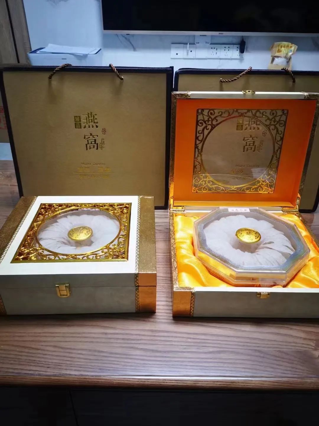 新鲜到货!【天龙标精品燕窝】最好产地印尼棉兰燕窝之乡,不泡药水,不漂色,不刷胶,零添加,发头好,口感好,质量好,燕窝质量过硬,长期热销品,全套精品礼盒包装每盒250克,4680元