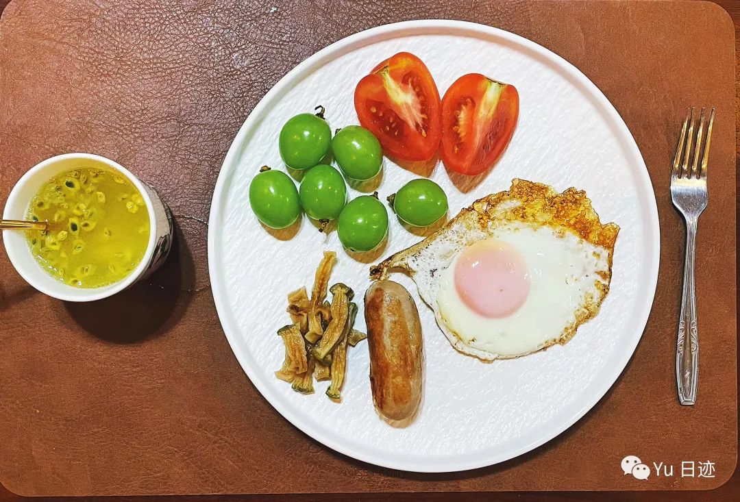 早餐一般长这样,简单快捷,营养也够。平时一杯牛奶的,今儿早上发现鲜奶没了,冲了一杯百香果。